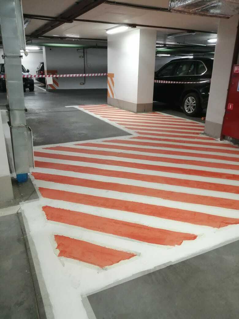 Разметка эвакуационных проходов в паркинге 2021